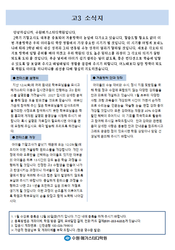 고등 [고3] 12월 가정통신문