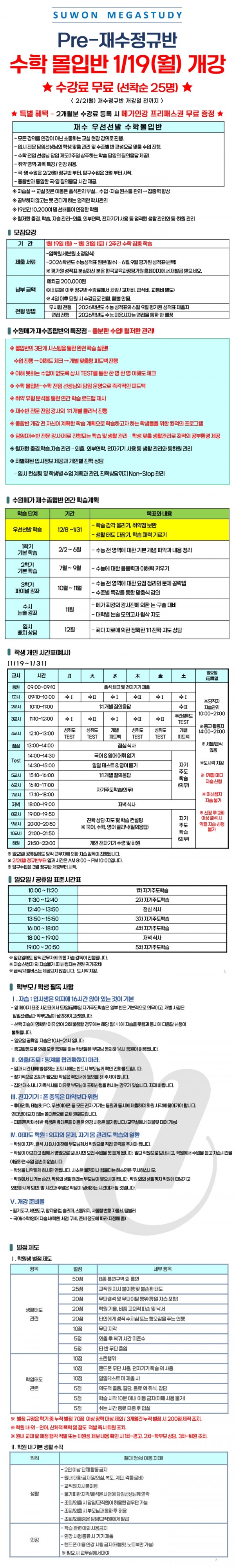 재수 2027 Pre-재수정규반 <수학 몰입반> 개강 페이지 정보 작성자 최고관리자 작성일 26-01-08 10:56 조회 728회 댓글 0건 본문 2027 Pre-재수정규반 <수학 몰입반> 개강