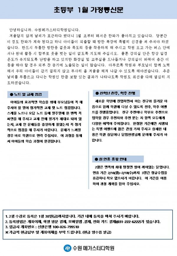 초등 [초등] 1월 가정통신문
