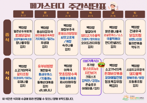 2월 1주차 식단표(2/2-2/7)